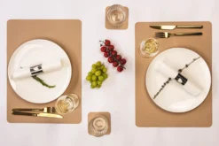 Heb je binnenkort een gezellig diner met vrienden of familie gepland? Hierbij kan een mooi gedekte tafel natuurlijk niet ontbreken! Met deze set Jay Hill Placemats Leer Bruin Zand kleed jij je tafel prachtig aan. Deze set bestaat uit zes placemats die zijn gemaakt van soepel kunstleer. Na gebruik reinig je ze gemakkelijk door af te nemen met een vochtige doek. Doordat de placemats dubbelzijdig zijn kan je een speels en kleurrijk geheel creëren!