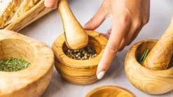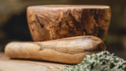 Ben je fan van houten accessoires voor de keuken en gebruik je vaak fijngemalen kruiden? Met deze vijzel Tunea maal je eenvoudig je kruiden fijn. Fijne kruiden zijn heerlijk voor verder gebruik in sauzen, soepen en marinades. Het olijfhout is zeer sterk en pakt prettig beet. De vijzel heeft een platte afwerking, is 10 cm breed en wordt geleverd met beker + stamper.