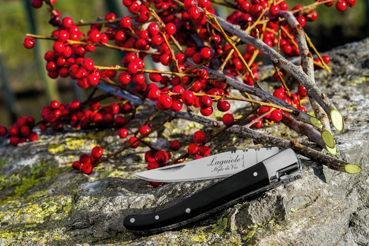 Een zakmes is onmisbaar, zeker dit handzame exemplaar van Style de Vie. Het Laguiole zakmes heeft een scherp lemmet van 9 cm en is gemakkelijk is gebruik. Dankzij het ergonomisch vormgegeven houten heft ligt het mes prettig in de hand. Het zakmes wordt geleverd in een luxe giftbox inclusief echtheidscertificaat.