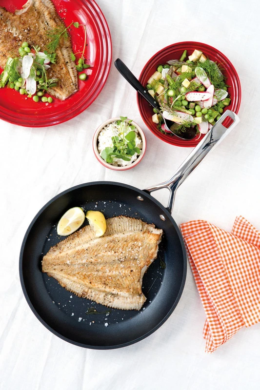 De Le Creuset TNS-pan is gemaakt van gesmeed aluminium. Dit zorgt voor een optimale warmtespreiding. Dankzij de stalen schijf in de bodem is de pan geschikt voor alle verschillende warmtebronnen. De handgrepen hebben een professionele stijl en zijn bevestigd met roestvrijstalen klinknagels voor een superieure, veilige bevestiging. Bovendien hoef je geen zorgen te maken dat de handgrepen heet worden: doordat de binnenkant hol is, worden de handgrepen minder snel warm.