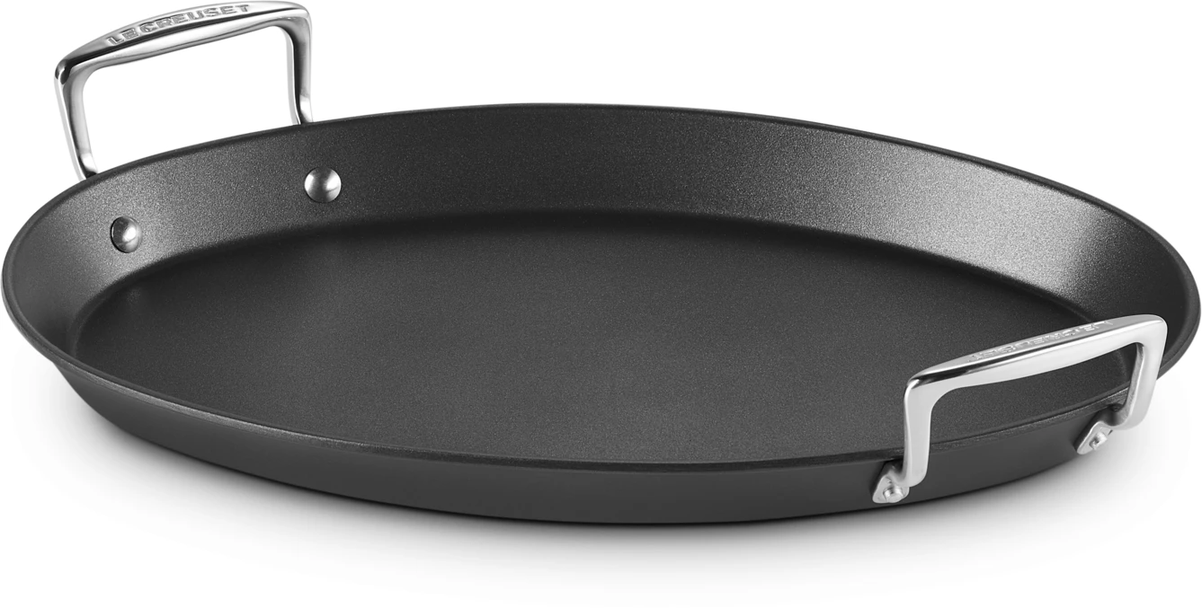 Bereid je favoriete visgerechten in deze elegante gevormde ovale Le Creuset Vispan Les Forgees. De vispan is gemaakt van gegoten aluminium. Dit materiaal verdeelt de warmte snel en gelijkmatig, wat ideaal is voor het bereiden van snelle en lekkere maaltijden. Deze pan beschikt over een effectieve verstevigde antiaanbaklaag en zorgt ervoor dat het eten eenvoudig loskomt voor een verfijnd en overheerlijk resultaat. Dankzij de coating kun je met weinig of geen vet koken en is hij zeer eenvoudig te reinigen.