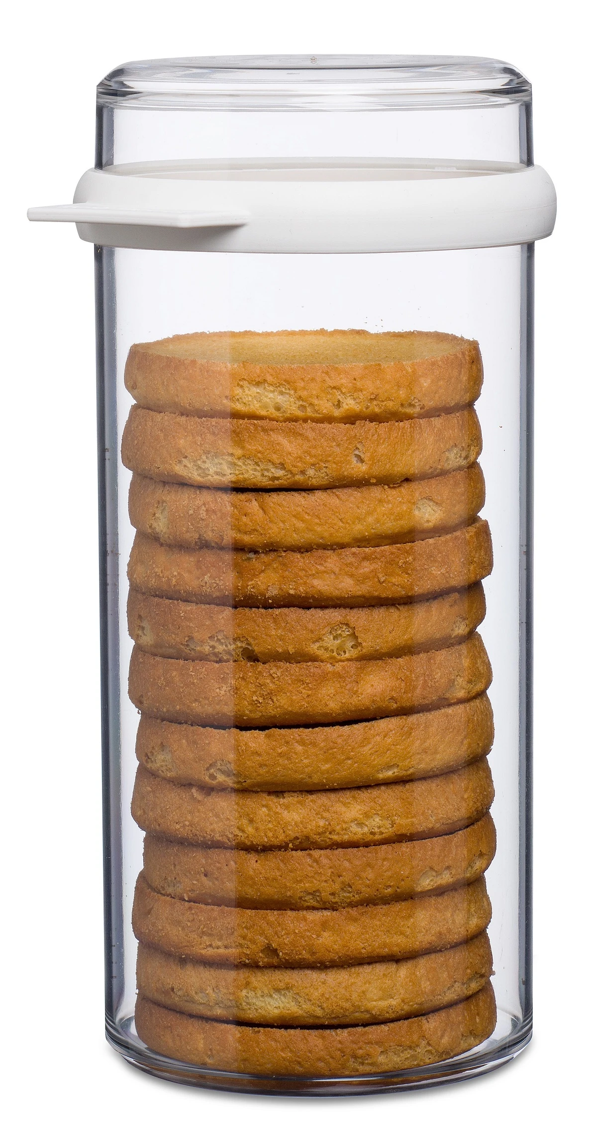 Op zoek naar een beschuitbus om eenvoudig je beschuiten in te bewaren? Met deze Mepal beschuitbus Stora blijven je beschuitjes een stuk langer knapperig. De luchtdicht afgesloten bus is gemaakt van kunststof en 100% BPA-vrij. De deksel haal je eenvoudig van de bus af door de handige siliconen rand aan de buitenkant. Het transparante kunststof maakt het mogelijk de inhoud van de bus te zien. Je ziet dus altijd hoeveel beschuiten je nog over hebt. Is deze witte Mepal beschuitbus vies? Geen probleem! Je reinigt hem eenvoudig in de vaatwasser.