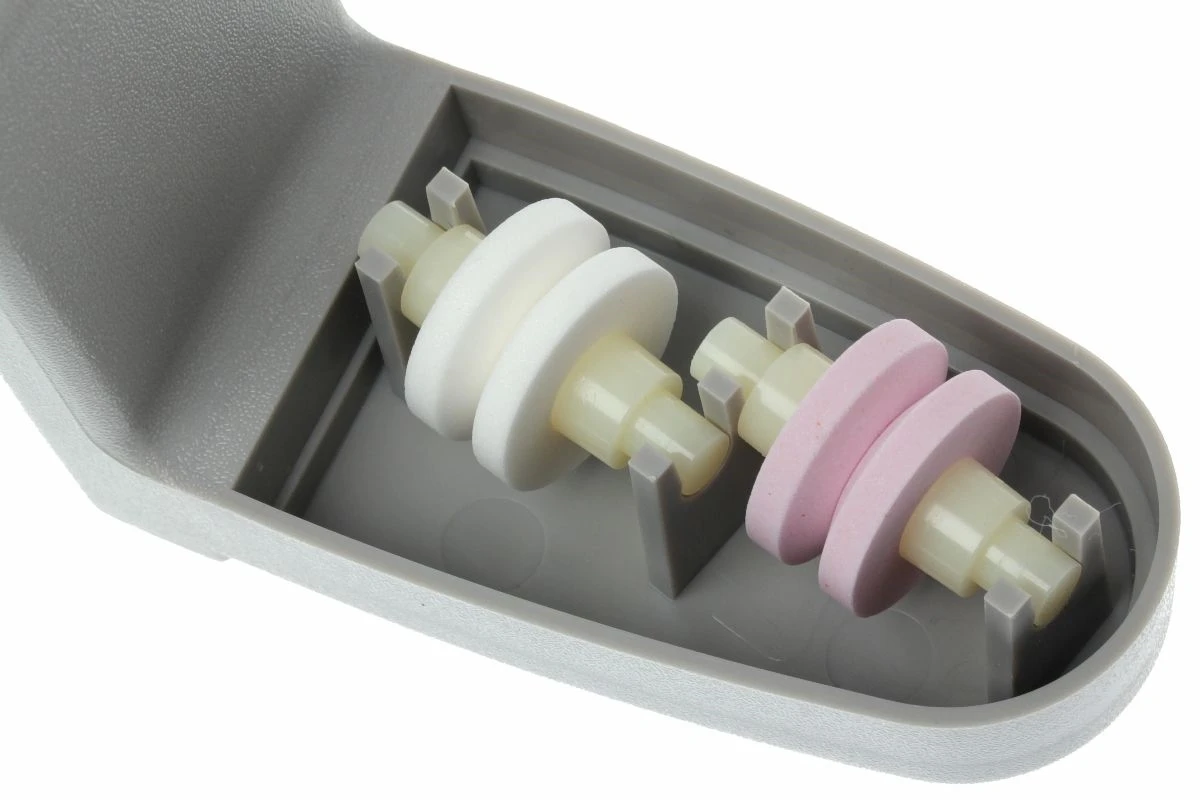Slijp jij je messen vaak met de minosharp waterslijper 0220 of wil je deze aanschaffen? Deze vervangende Minosharp slijpwielset zorgt ervoor dat je jouw messen kunt blijven slijpen met de Minosharp Waterslijper 0220. De keramische wieltjes moeten regelmatig vervangen worden om een goed resultaat te garanderen.