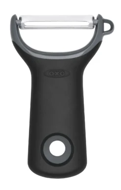 Deze OXO dunschiller is een onmisbaar item in uw keuken. Zonder enige moeite schilt u voortaan uw aardappels, komkommer, appels, wortels en nog veel meer. Door het scherpe roestvrijstalen blad glijdt het blad gemakkelijk door de schil van zelfs de hardste fruit en groentesoorten. Deze dunschiller is voorzien van een zachte, comfortabele antislipgreep, een ophangoog en een aardappeloogverwijderaar. De dunschiller kun je ook gebruiken als je linkshandig bent. Na gebruik mag hij in de vaatwasmachine.