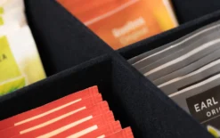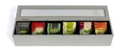 Hou al je theezakjes overzichtelijk bij elkaar met deze Theedoos Wit 6-vaks – met Fluweel – 43 x 9 cm! De theedoos is gemaakt van hout en heeft 6 vakjes. Ook heeft hij een doorzichtige deksel, zodat je gemakkelijk alle theesmaken kan zien. De theedoos heeft een afmeting van 43 x 9 cm en de binnenkant is van fluweel.