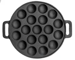 Deze gietijzeren poffertjespan hoef je niet in te branden. Door het gebruik ontwikkelt er een natuurlijke laag die zich zal gedragen als een antiaanbaklaag.