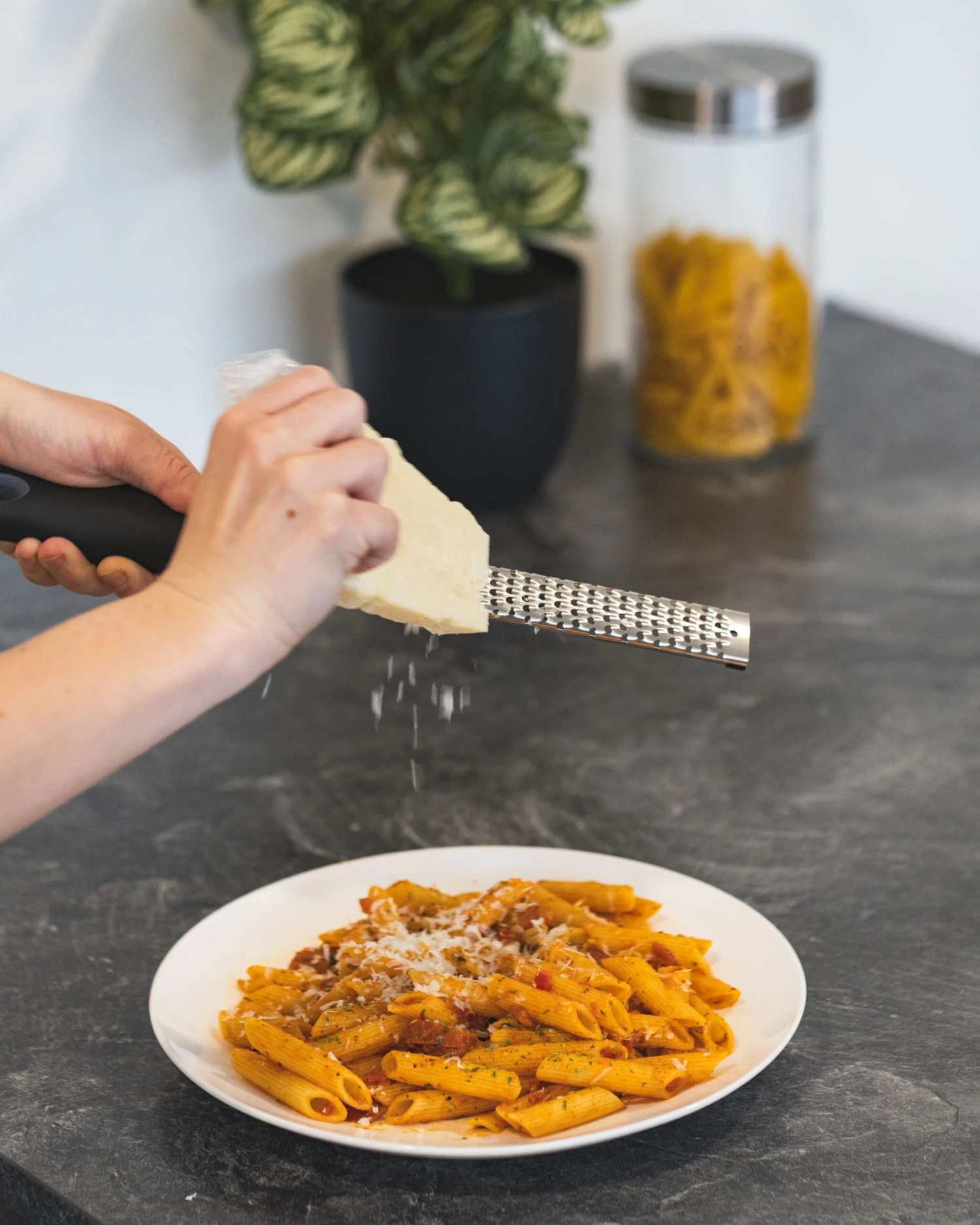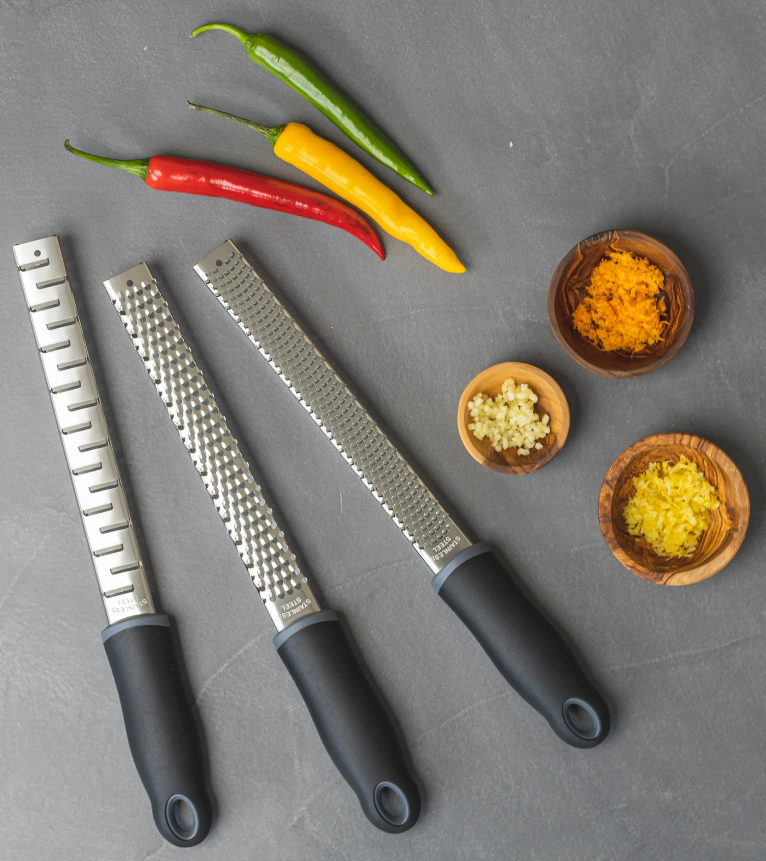 De Cookinglife Raspen – 3 Stuks is een ideale raspen set. Deze set is voorzien van drie raspen met drie verschillende maten van grof naar fijn. Dit is bijvoorbeeld ideaal voor het raspen van een citrus-schil, Parmezaanse kaas of chocolade. Daarnaast hebben de Cookinglife Raspen – 3 Stuks een handige ophanglus, hierdoor kan jij ze altijd kwijt in jouw keuken!