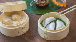 - Breng ruim water in een pan aan de kook, zorg dat de bodem van het mandje het water niet raakt. Leg eventueel bananenblad of bakpapier in het mandje en leg je product hier boven op.