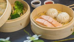 - Breng ruim water in een pan aan de kook, zorg dat de bodem van het mandje het water niet raakt. Leg eventueel bananenblad of bakpapier in het mandje en leg je product hier boven op.