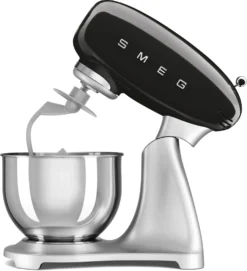 De SMEG Keukenmachine Zwart SMF02BLEU is een mixer die wordt geleverd met 3 opzetstukken. De machine is een aanvulling voor iedere keuken en mag dus zeker niet ontbreken! Je kunt de keukenmachine instellen op 10 verschillende snelheden, waardoor je zelf kunt bepalen of je een luchtig of stevig beslag wilt maken en zo dus zelf controle krijgt over de bereiding. De SMF02 is de opvolger van de SMF01, het verschil zit hem in de vorm van de voet. De voet is zo aangepast zodat de optionele glazen kom SMGB01 er ook op past, deze kom past niet op de SMF01.