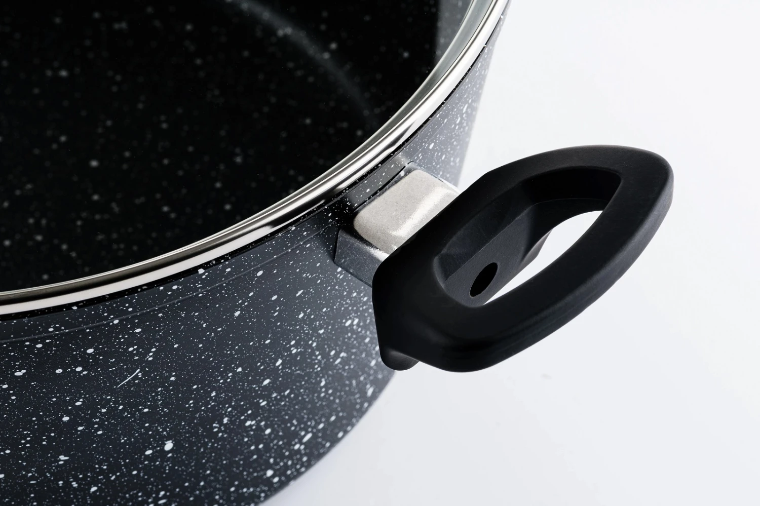Bereid de lekkerste gerechten in deze Westinghouse Hapjespan Black Marble 28 cm / 4.5 Liter! De hapjespan is gemaakt van aluminium en is licht van gewicht. Dankzij de anti-aanbaklaag ben je minder vet of olie nodig tijdens het koken en is de pan 100% vrij van PFOA of andere schadelijke stoffen. De pan is geschikt voor alle soorten warmtebronnen en de handgreep blijft koel tijdens het koken. Na het gebruiken van de Westinghouse Hapjespan Black Marble 28 cm / 4.5 Liter kan deze eenvoudig worden gereinigd in de vaatwasser.