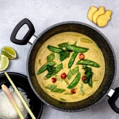 Met de Westinghouse Zwart Marmer Kookpan 24cm haal je een ideale kookpan in huis om de heerlijkste gerechten te bakken, stoven en braden. De braadpan is voorzien van een duurzame anti-aanbaklaag. Door de snelle opwarming en gelijkmatige warmteverdeling bereid je makkelijk en snel je favoriete gerechten, ook voor een groot gezelschap.