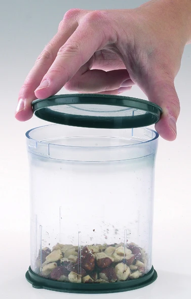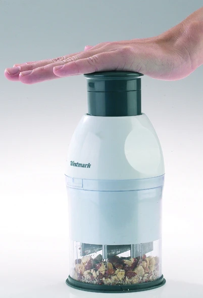 Met deze uienhakker van Westmark snij je eenvoudig en snel uien, groenten of noten voor een heerlijke maaltijd. Geen vervelend klusje meer, want met deze keukenmachine is het een fluitje van een cent! Leg bijvoorbeeld een ui in het bakje, plaats de hakker erin en bij elke hakbeweging draait het messtel automatisch een slag. Hoe vaker je hakt, hoe fijner het gesneden wordt. Uitjes voor in een salade, voor op een frikadel speciaal of voor een ander gerecht? Geen probleem, want je hebt ze zo gesneden!
