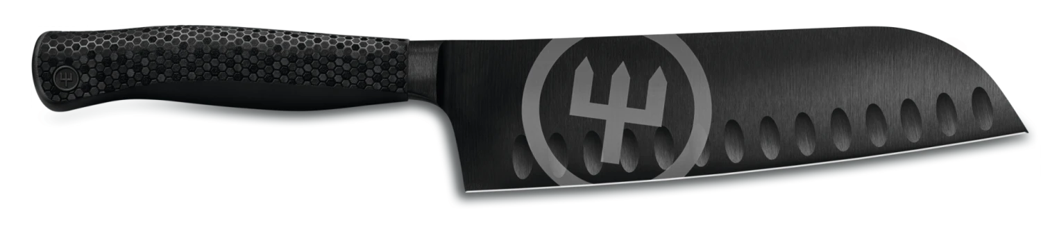 Performer santokumes met kuiltjes 17 cm is een echte all-rounder in de keuken. Het Japanse koksmes is krachtig en veelzijdig: of het nu gaat om het dynamisch wegen en hakken van kruiden, groenten en fruit of het nauwkeurig snijden van vlees en vis – het extreem scherpe mes ondersteunt fijne tot flinterdunne sneden. Als chefmes met een breed lemmet is het een opvallend energiek instrument en begeleidt het je met zijn behendigheid op betrouwbare wijze bij de bereiding van vers voedsel. Voor een optimale levensduur, wordt aangeraden de messen met de hand schoon te maken direct na gebruik.